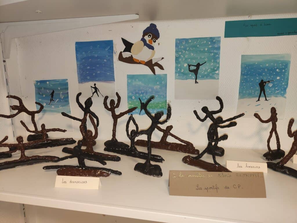 Entre sport et créativité : les CP exposent leurs productions artistiques dans la vitrine de l’école