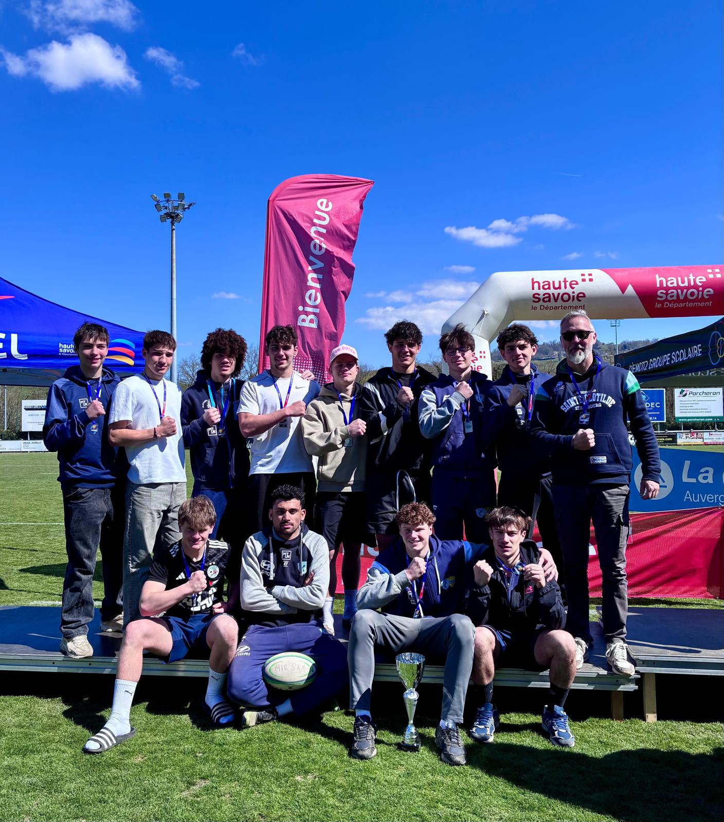 Direction Rumilly en Haute-Savoie, début avril pour notre section sportive rugby à l’occasion du Championnat National UGSEL de rugby à VII. Deux jours de compétition intense, qui auront conduits nos joueurs à une magnifique deuxième place nationale.
